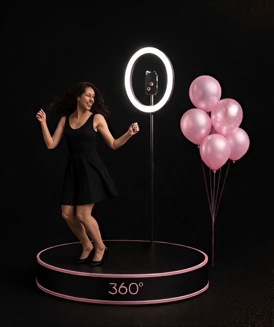 עם מראת סלפי מעוצבת, עמדת צילום 360